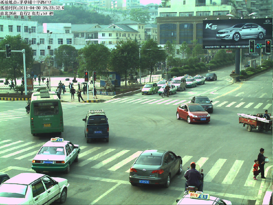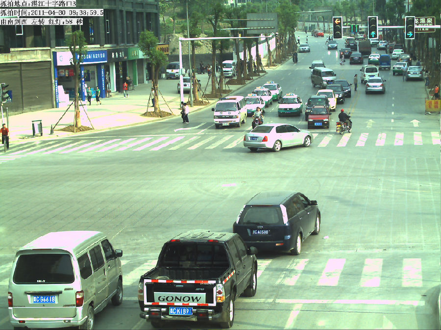 該系統采用采取純視頻檢測方式,自動對視頻流中運動物體進行實時逐幀檢測、鎖定、跟蹤,根據車輛運動軌跡判斷車輛是否違章并進行記錄,無需破壞路面,埋設線圈。采用200萬或500萬CCD高清一體化攝像機為采集主體,單臺200萬攝像機可覆蓋單向2車道,單臺500萬攝像機可覆蓋3車道;采用LED頻閃燈進行夜間補光。設備穩定結構簡單,便于安裝維護。
